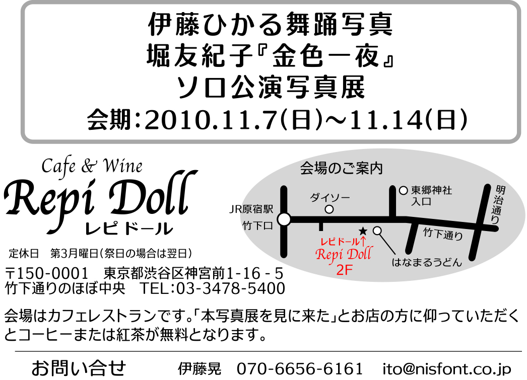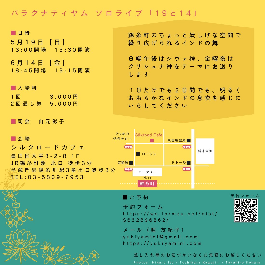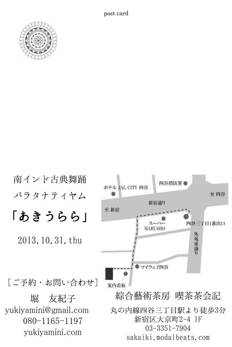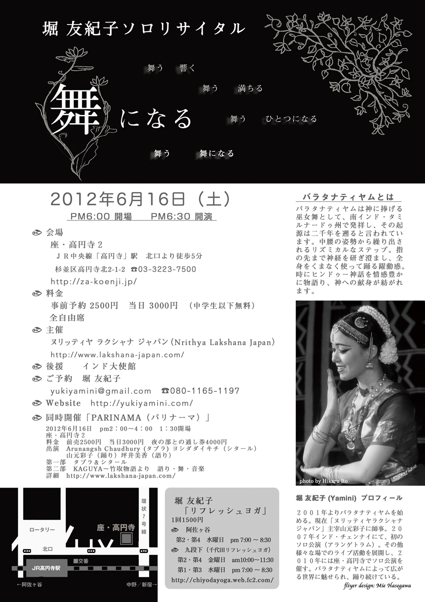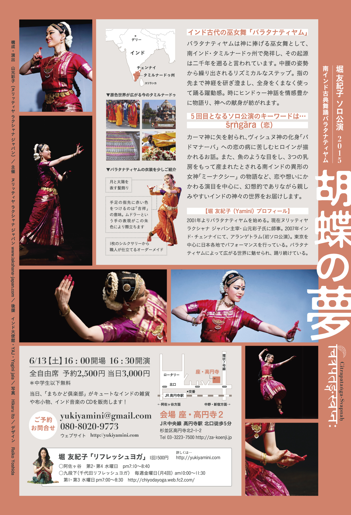 | 予約・問 | 堀 友紀子 mail またはナタラジ荻窪店 03-3398-5108 |