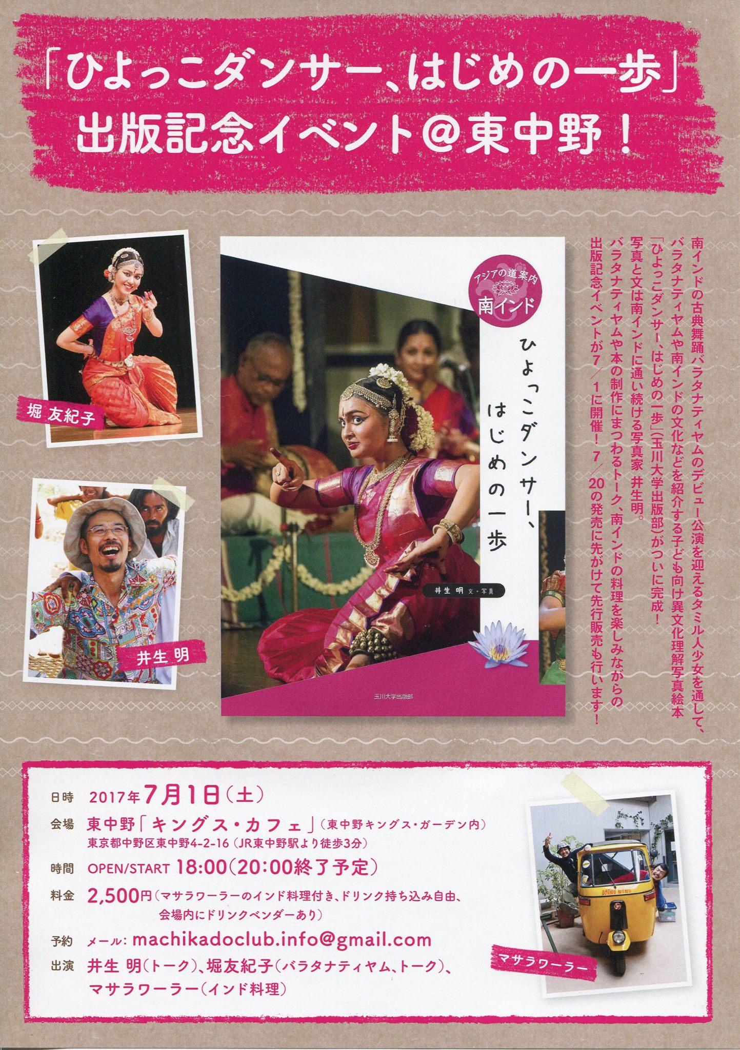・トーク:井生明 ・南インド料理:マサラワーラー ・南インド古典舞踊バラタナティヤム&トーク:堀友紀子 |